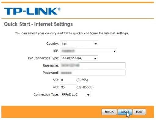 - سپس اطلاعات دریافتی از IPS ( سرویس دهنده اینترنت ) خود را وارد نمایید.