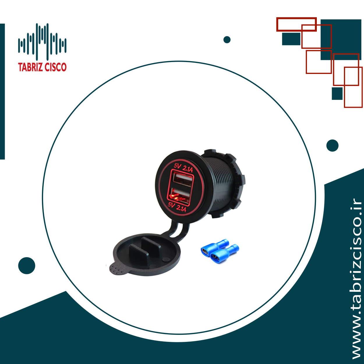ماژول شارژر USB روپنلی گرد دارای دو خروجی 2.1 آمپر (جریان بالا) با ورودی 12 الی 24 ولت DC مناسب نصب روی انواع خودرو یا پنل