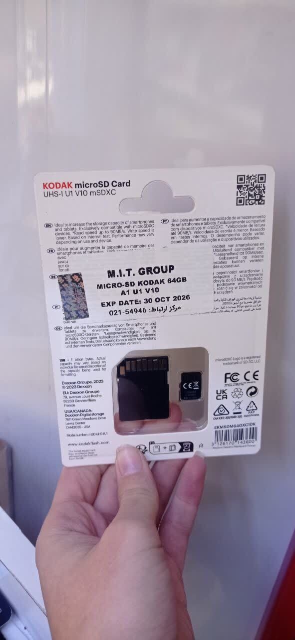 رم موبایل کداک (KODAK) مدل 64GB MicroSD U1 V10 A1 90MB/S خشاب دار